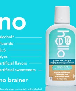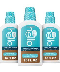 Hello Peace Out Plaque, Antigingivitis Alcohol Free Mouthwash, Natural Mint with Aloe Vera and Coconut Oil, Fluoride Free, Vegan, SLS Free and Gluten Free, 16 Ounce (Pack of 3)