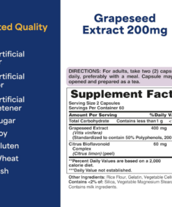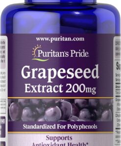Puritan’s Pride Grapeseed Extract 200mg, Dietary Supplement for Antioxidant and Heart Health Support, 2 Month Supply, 120 Rapid Release Capsules