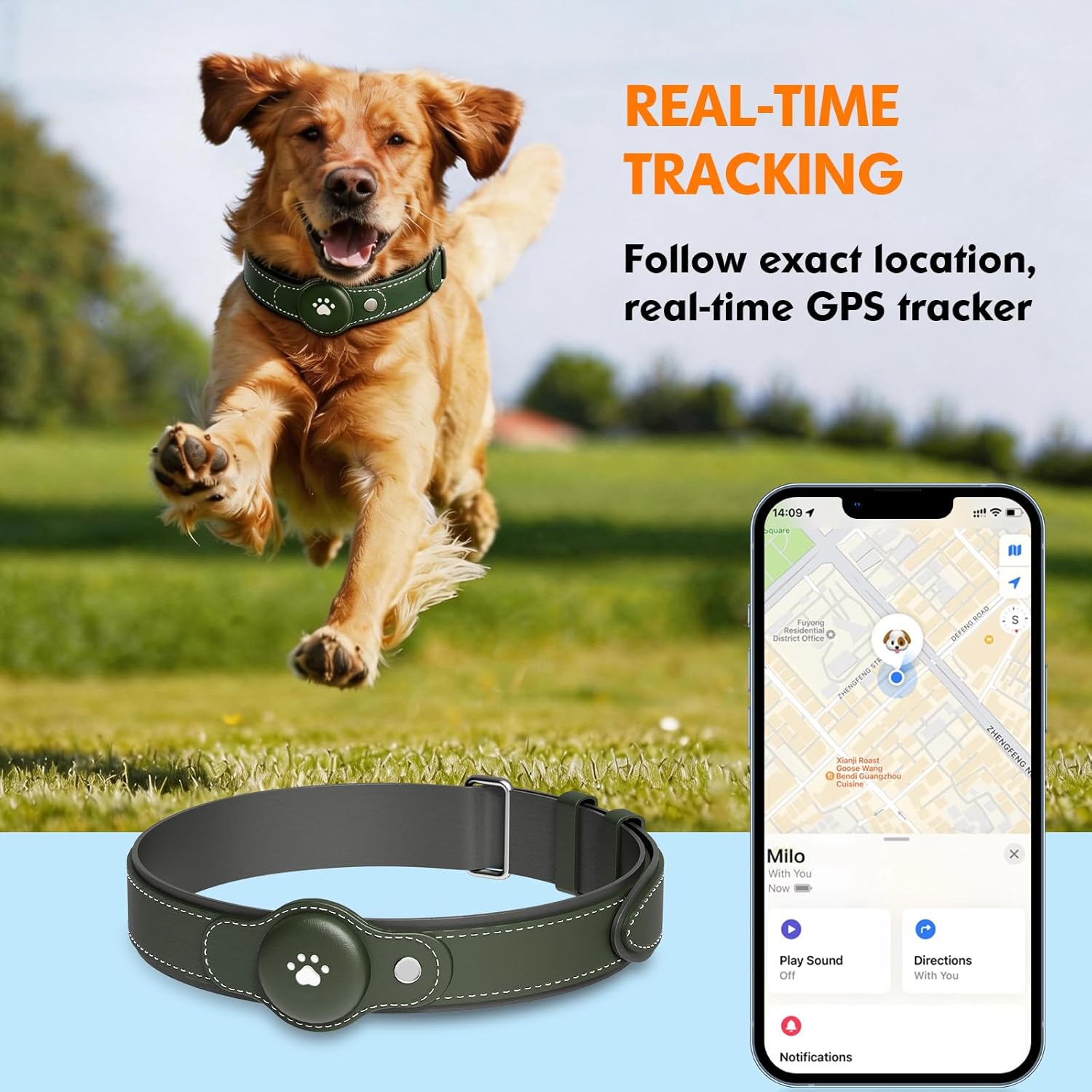 🟢No Monthly Fees & Free Application: No subscription, no SIM card, no monthly charges—just use the free app to track your pet/dog anytime with real-time updates. Easily see their location from anywhere and always know where they are, so you never have to worry about them getting lost again.