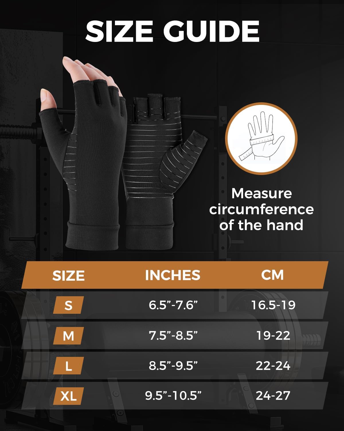 Copper Compression Gloves for Arthritis – Open Finger, Set of 2 Pairs (4 Gloves) – For Men & Women, Hand Support for Typing & Daily Wear, Helps Ease Stiffness & Swelling
