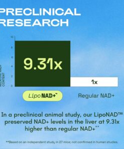 PRECLINICAL RESEARCH: Based on an independent preclinical animal study, LipoNAD preserves NAD+ content in the liver at 9.31x higher than regular NAD+. Not confirmed in human studies.