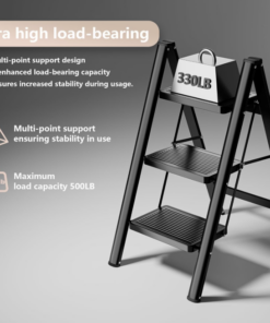 FOLDABLE-3 STEP LADDER: The 3 step household folding steel step stool is a high priority for all families. The step ladder is made of heavy-duty steel that supports up to 330 pounds. Reach everything inside your home!