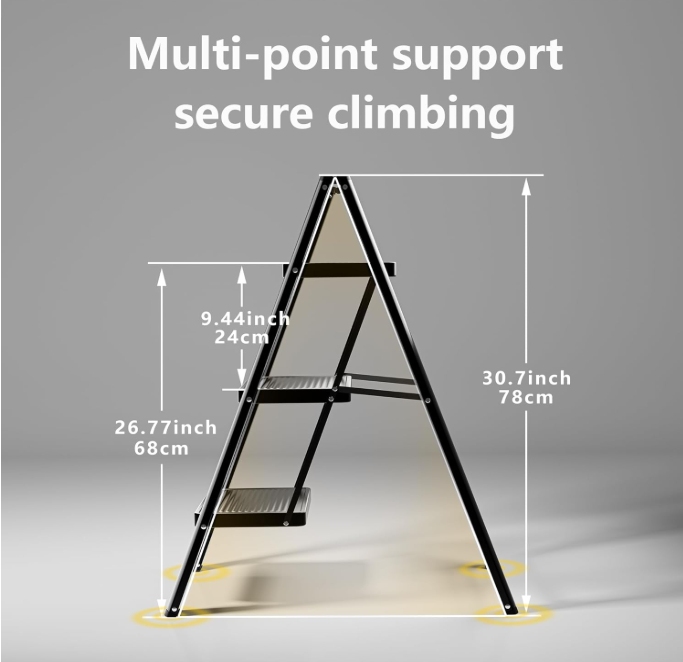 SECURITY AND STABILITY: The 3 step ladder has a steel wide anti-slip pedal and all 4 legs have non-slip rubber caps to ensure that the ladder remains stable while you perform high-up tasks. Multi-use step ladder is suitable for use in the kitchen, garage, and laundry room, while cleaning, or doing home repairs.